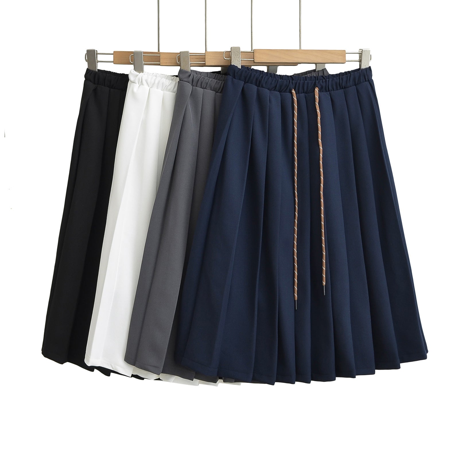 Drawstring elastic waist mid length skirt