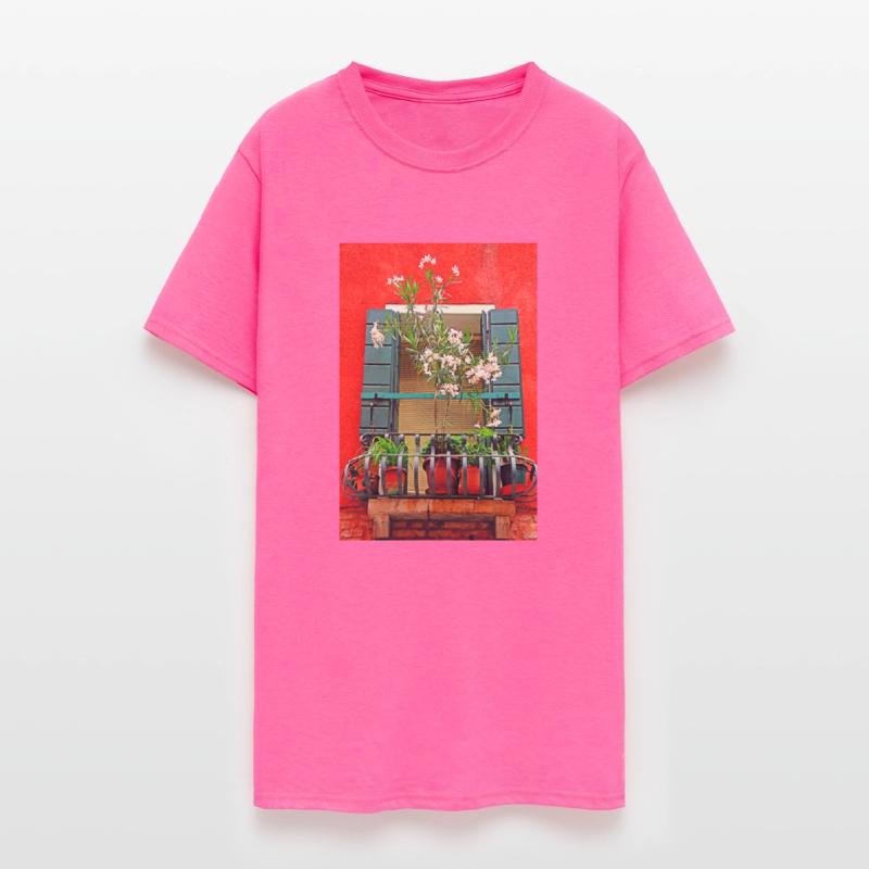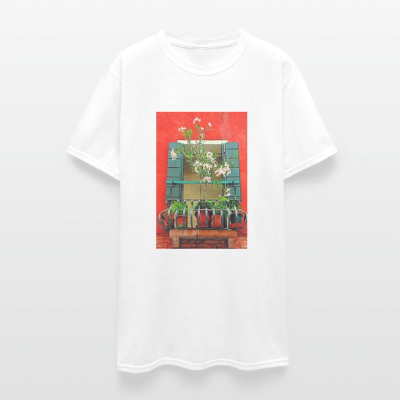 - Double-needle stitched hemmed sleeves ad bottom hem